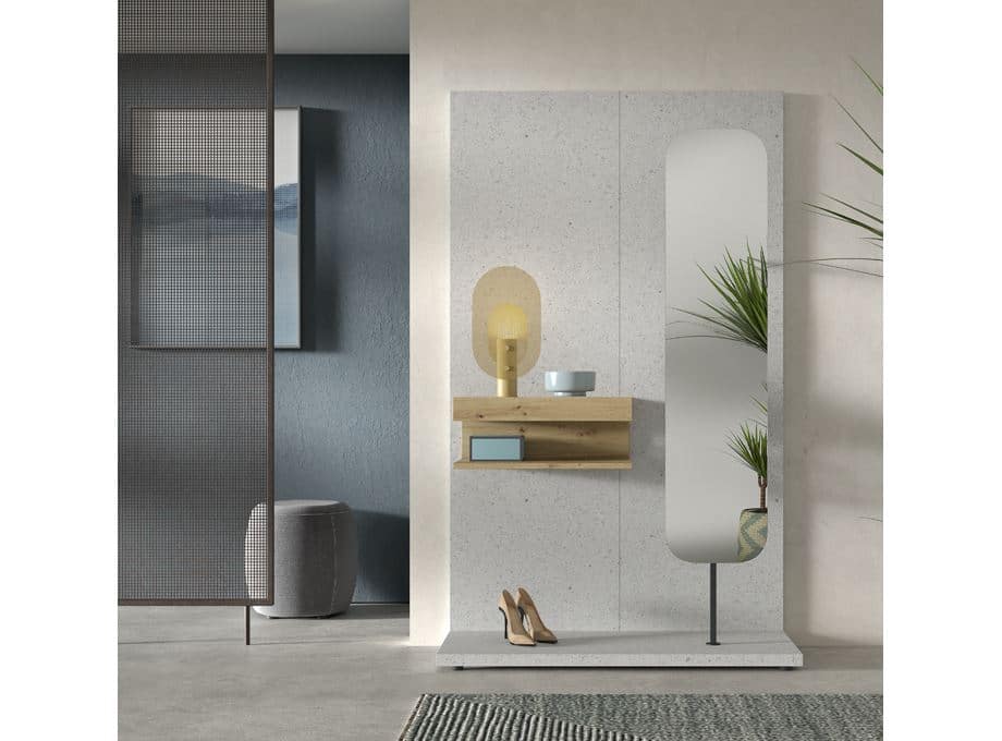 Nuevo recibidor con un gran diseño que será la bienvenida perfecta a tu hogar. Lo tenemos en color lava stone y roble artesano.
